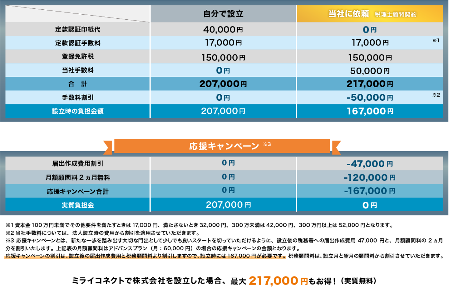 設立に必要な基本費用(定款認証印紙代・登録免許税・手数料)はすべて明確。
